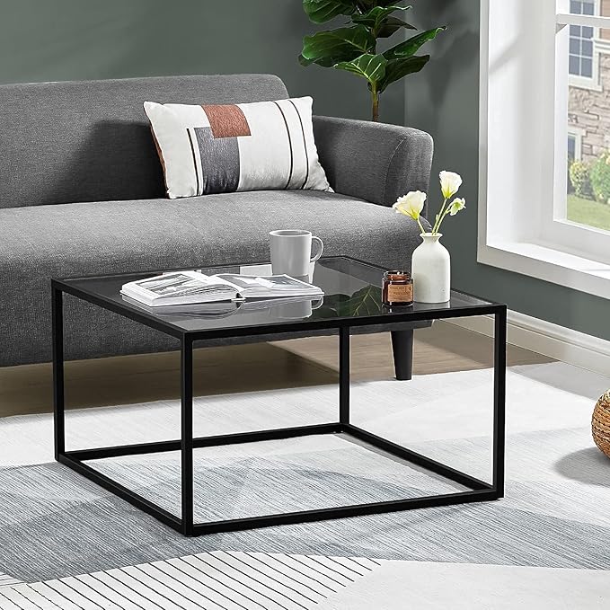 Elevate your living space with this sleek and contemporary coffee table. Featuring a durable black metal frame and a clear tempered glass top, this piece combines minimalism with functionality. Its open cube design creates an airy feel, making it perfect for both small and large rooms.